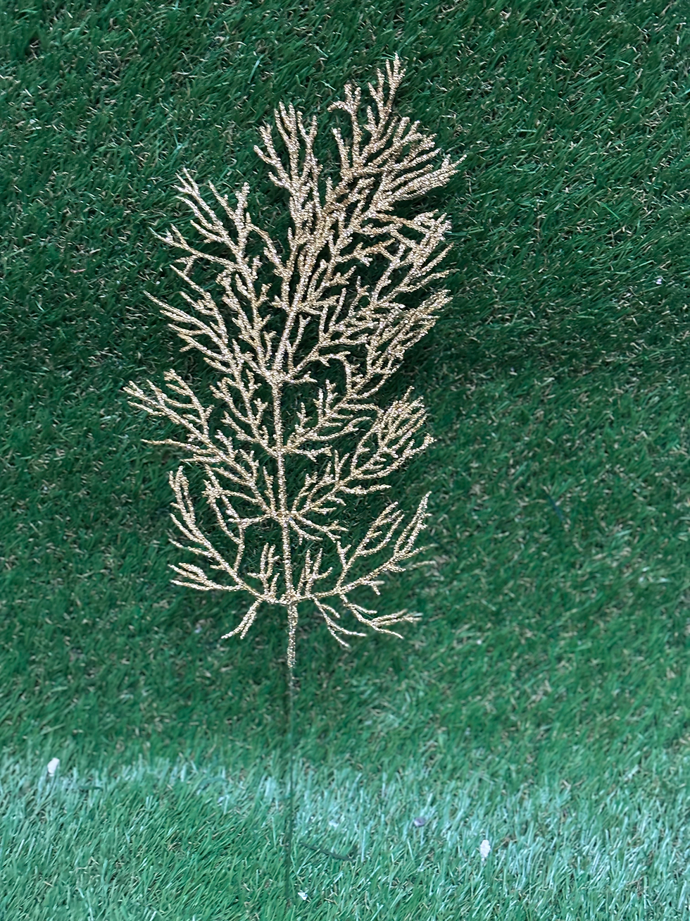 36 Cm Delicate Glittered Leaf Stem x 6 Gold